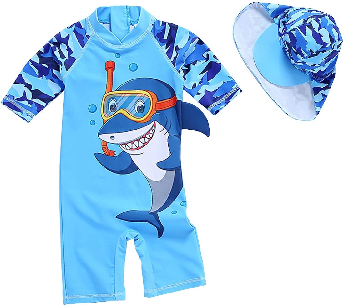 Baby toddler boys two pieces swimsuit set swimwear dinosaur bathing suit rash guards with hat upf 50+. The long sleeve baby swimwear by beautyin is made from 100% polyester with a tight weave that offers upf 50+ sun protection for your child's skin from uva and uvb rays. Just one you made by carter's. Our selection of baby uv swimwear will make sun protection a zip! It's so important to make sure that your baby's delicate skin is protected from the sun with upf 50+ fabric that blocks out 98% of the sun's harmful uva and uvb rays.